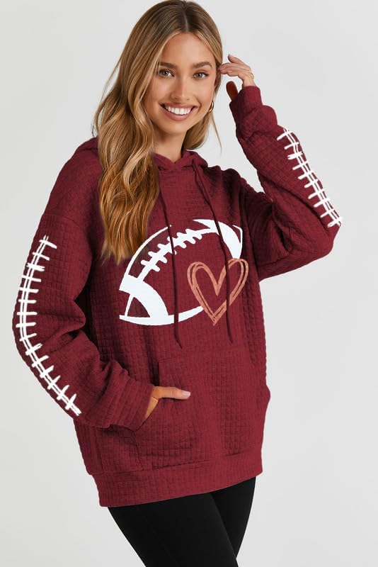 Soft waffle knit + playful graphic = instant fall favorite. The slouchy hood adds that cozy weekend feel, while the football print keeps it game-day relevant. Great for layering when you’re switching from outdoor tailgating at home to indoor game watching.